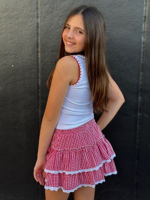 FBZ Red Gingham Ruffle Skirt