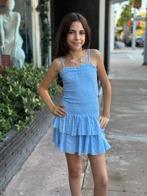 FBZ Blue Eyelet Smocked Dress