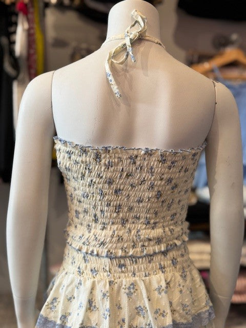 This versatile off-white smocked top features an elegant blue floral print that captures effortless sophistication. The adjustable halter straps provide a customizable fit while the smocked bodice creates flattering texture and movement. The design works beautifully as a standalone piece or pairs seamlessly with the coordinating FBZ Blue Floral Skirt for a cohesive ensemble. The breathable fabric and thoughtful construction make it an ideal choice for warm-weather occasions, from casual outings to more polished events. A timeless addition to any wardrobe that transitions easily across seasons and styling preferences.