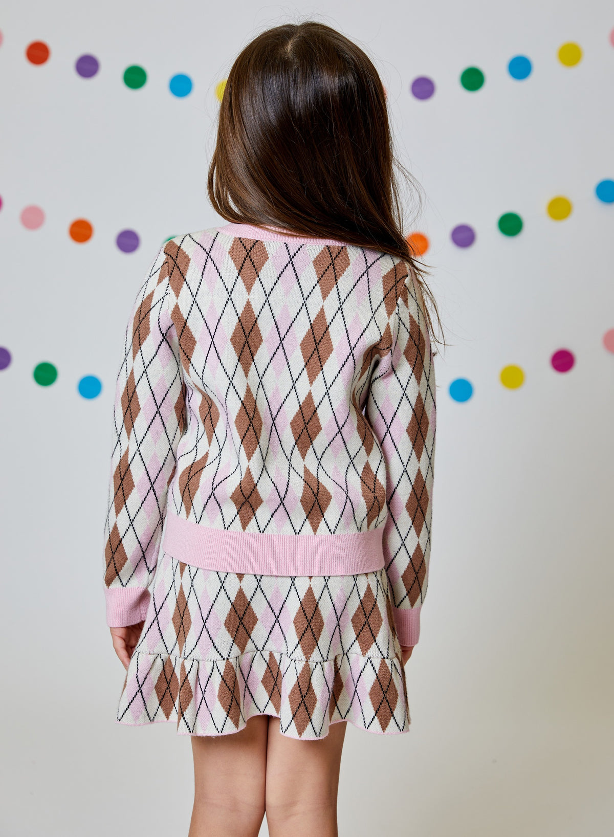 Add a playful touch to your wardrobe with this pink and brown print long sleeve sweater top, featuring chic contrast trim that elevates its style. Designed for comfort and flair, it pairs perfectly with your favorite jeans or skirts for a girly yet cool look. The flattering fit and soft fabric keep you cozy all day long, making it a versatile favorite for casual outings or cozy nights in. Modeled in size 6 for a perfect blend of shape and ease.
