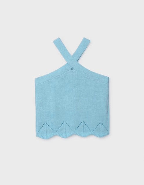 The MAY Blue Knit Halter Top is your go-to piece for effortless elegance and undeniable charm. Crafted from sumptuous knit fabric in a captivating blue tone, this top features an enchanting open stitch detail that adds a touch of sophistication and visual intrigue. The flattering halter neckline beautifully showcases your shoulders and collarbone while creating a graceful, feminine shape that's simply divine. The luxuriously soft knit hugs you in all the right places while allowing for comfortable movement. Style it with your favorite skirt for a polished look, or keep it casual with denim for an approachable vibe. Our model wears a size 10, so you can see exactly how this beauty drapes and fits.