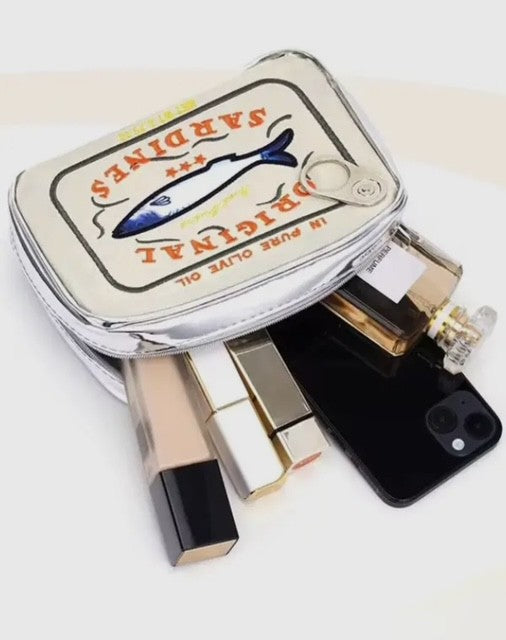 AL Violet/Yellow Sardine Cosmetic Bag brings playful sophistication to your daily routine. This compact pouch features a striking blue and silver sardine print that stands out in any bathroom or travel kit. The durable zipper closure keeps your essentials secure, while the perfectly sized 6 x 4.5 x 2 inch dimensions slip easily into bags, backpacks, or drawers. Whether you're organizing makeup, skincare, or small accessories, this quirky printed bag adds personality to your collection. A functional piece with unexpected style.