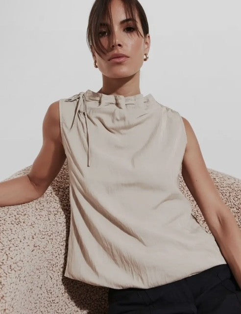 Elevate your everyday look with the NZ Beige Tie Detail Top, a chic sleeveless black top featuring a playful adjustable tie at the neckline for a flirty, personalized fit. Perfect for layering or wearing solo, this versatile piece adds a subtle edge to your outfit while keeping things effortlessly cool. Whether paired with jeans for a casual day out or dressed up with a skirt for evening vibes, this top brings a girly touch with an easygoing attitude. Model wears a size small for a sleek, flattering silhouette.